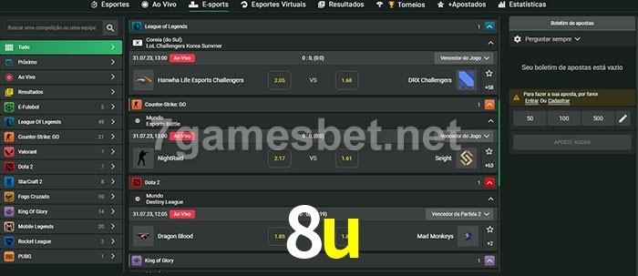 A aposta 8u oferece aos jogadores a experiência mais conveniente de apostas em eSports!